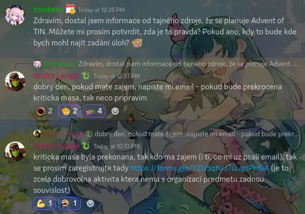 tmokenc kazdy den dostaneme nejaky ulohu v ramci TINu